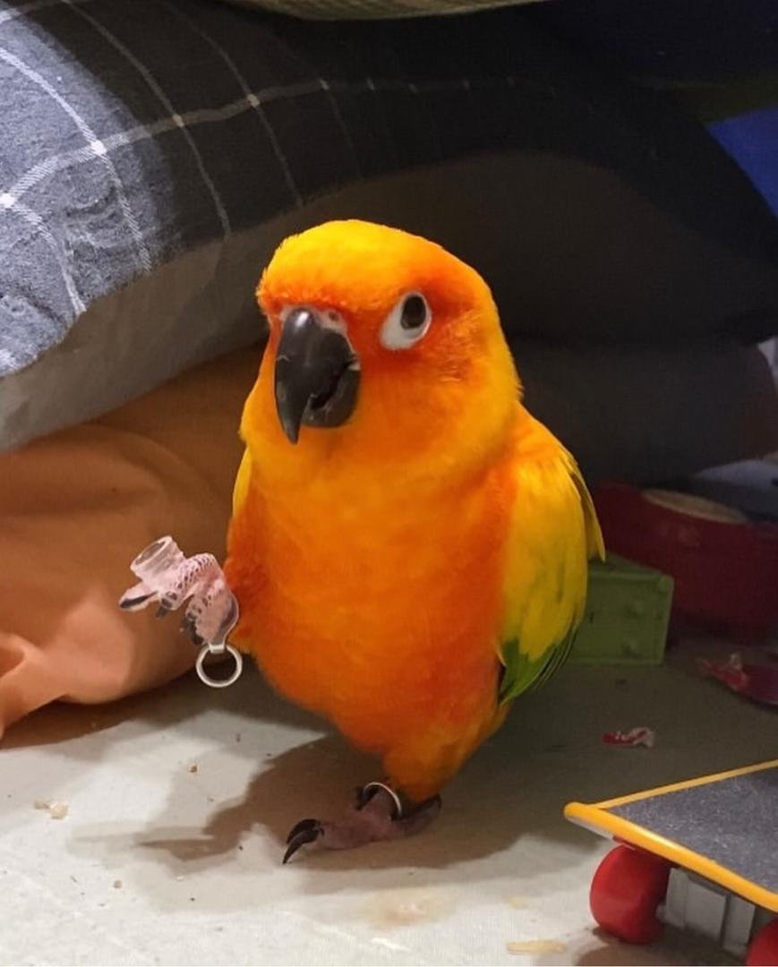 Golden Conures are often described as “velcro parrots” because they bond deeply with their owners.